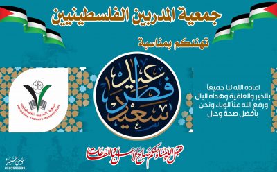 يتقدم رئيس وأعضاء مجلس إدارة جمعية المدربين الفلسطينيين بأسمى آيات التهنئة والتبريك لأبناء شعبنا الفلسطيني وأمتينا العربية والإسلامية وعموم المدربين الفلسطينيين بمناسبة حلول عيد الفطر السعيد.